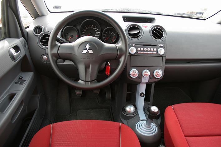 Στο Colt συναντάμε πιο «σκληρή» υλοποίηση, αφού ναι μεν η συναρμογή δείχνει κορυφαία, αλλά τα πλαστικά είναι σκληρά (και σε αφή). Κι εδώ υπάρχουν πολλές θήκες για μικροπράγματα (αλλά όχι όσες στο Jazz), αλλά η πολύ μοντέρνα και νεανική σχεδίαση είναι ταυτόχρονα και ελαφρά απρόσωπη. Το Colt πάντως έχει καλύτερη εργονομία από το Jazz και τους πιο όμορφους αεραγωγούς από τα τρία.
