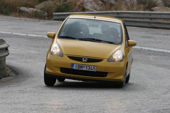 Ακολουθούν το Jazz και το Colt, με τη σειρά που εσείς θα επιλέξετε, διότι θα πρέπει να επιλέξετε χαρακτηριστικά. Εμείς ψηφίζουμε το Jazz τελικά, με μικρή διαφορά πάντως. Αυτό που μας ξένισε λίγο στο μικρό της Honda είναι η μέτρια πρόσφυση, καθώς και η απουσία ESP. Αντίθετα, το Colt έχει καλύτερη πρόσφυση και έχει και ένα πολύ καλό (έξτρα) ESP (MASC + MATC το λέει η Mitsubishi). Αλλά είναι πιο νωθρό. Το τιμόνι του είναι ελαφρά αποκομμένο και τα φρένα λίγο «ξερά», σε αντίθεση με τον πολύ καλό επιλογέα. Το κράτημά του είναι πολύ καλό, στην πίεση αντιδρά γραμμικά και με ασφάλεια, ενώ το MASC βοηθάει στη διατήρηση των ισορροπιών. Αν ο δρόμος δεν έχει καλή πρόσφυση το Colt έχει κάποιες τάσεις ελαφρώματος της ουράς, που ελέγχονται πολύ εύκολα και αν δεν τις διορθώσετε εσείς θα το κάνει χωρίς δισταγμό το MASC.